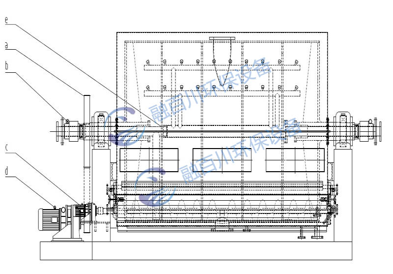 1.除塵口;2.罩殼;3.視窗;4.刮刀系統(tǒng);5.輸送絞龍;6.軸承及軸承座;7.側(cè)面視窗;8.轉(zhuǎn)鼓;9.側(cè)刮刀;